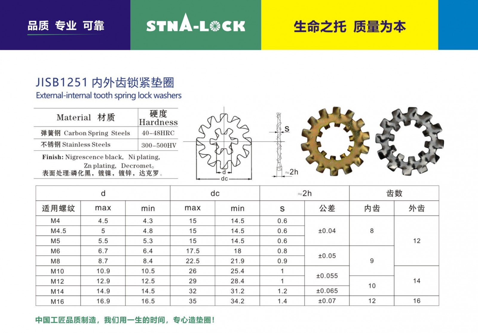 机械镀锌或达克罗表面处理,STNA-LOCK史特牢品牌内外齿锁紧垫圈,海量现货供应!