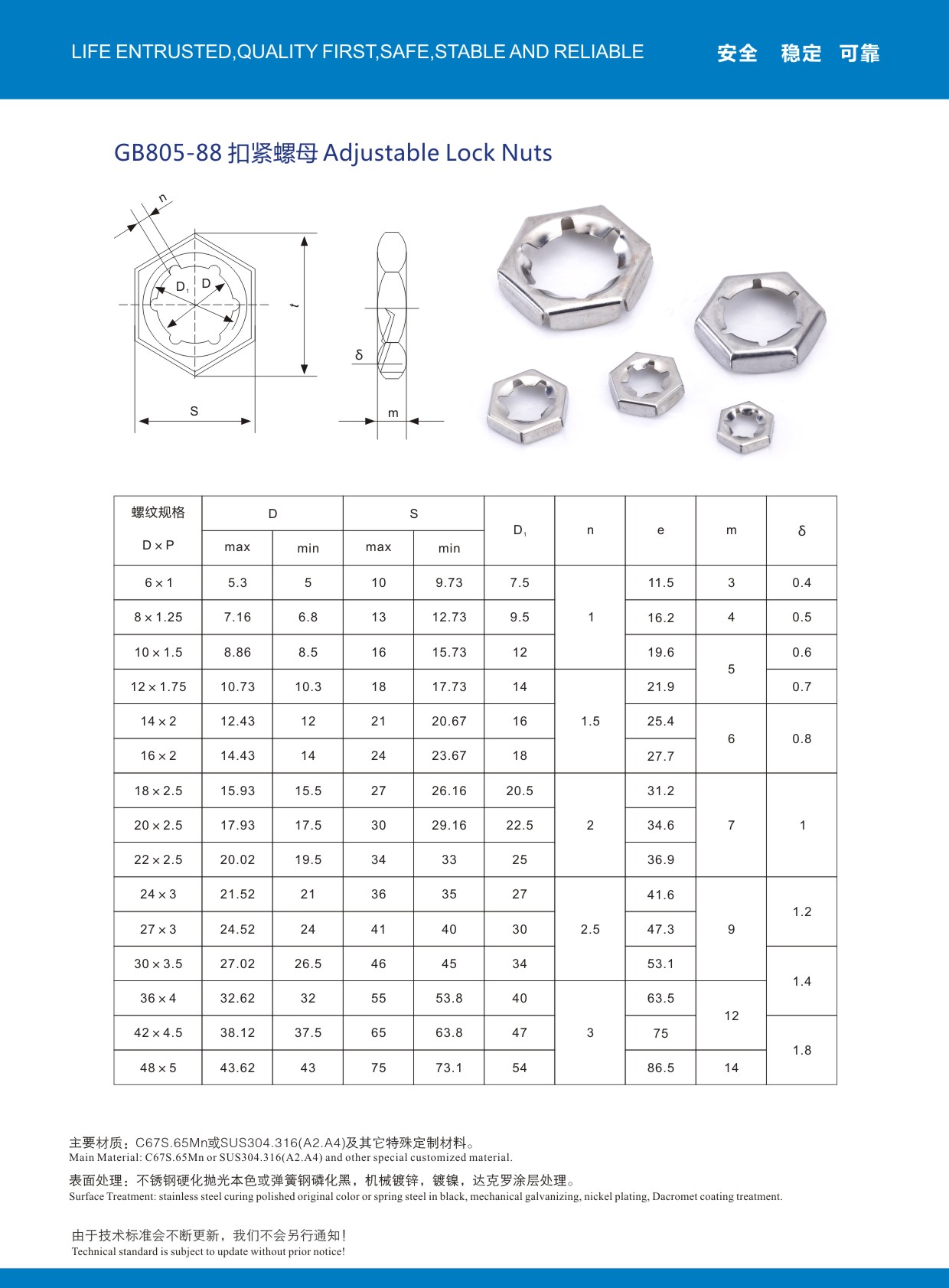 国标GB805扣紧螺母,使用65MN弹簧钢材质,全硬化镀锌除氢处理,常规品M4-M48现货齐全!欢迎索样咨询!