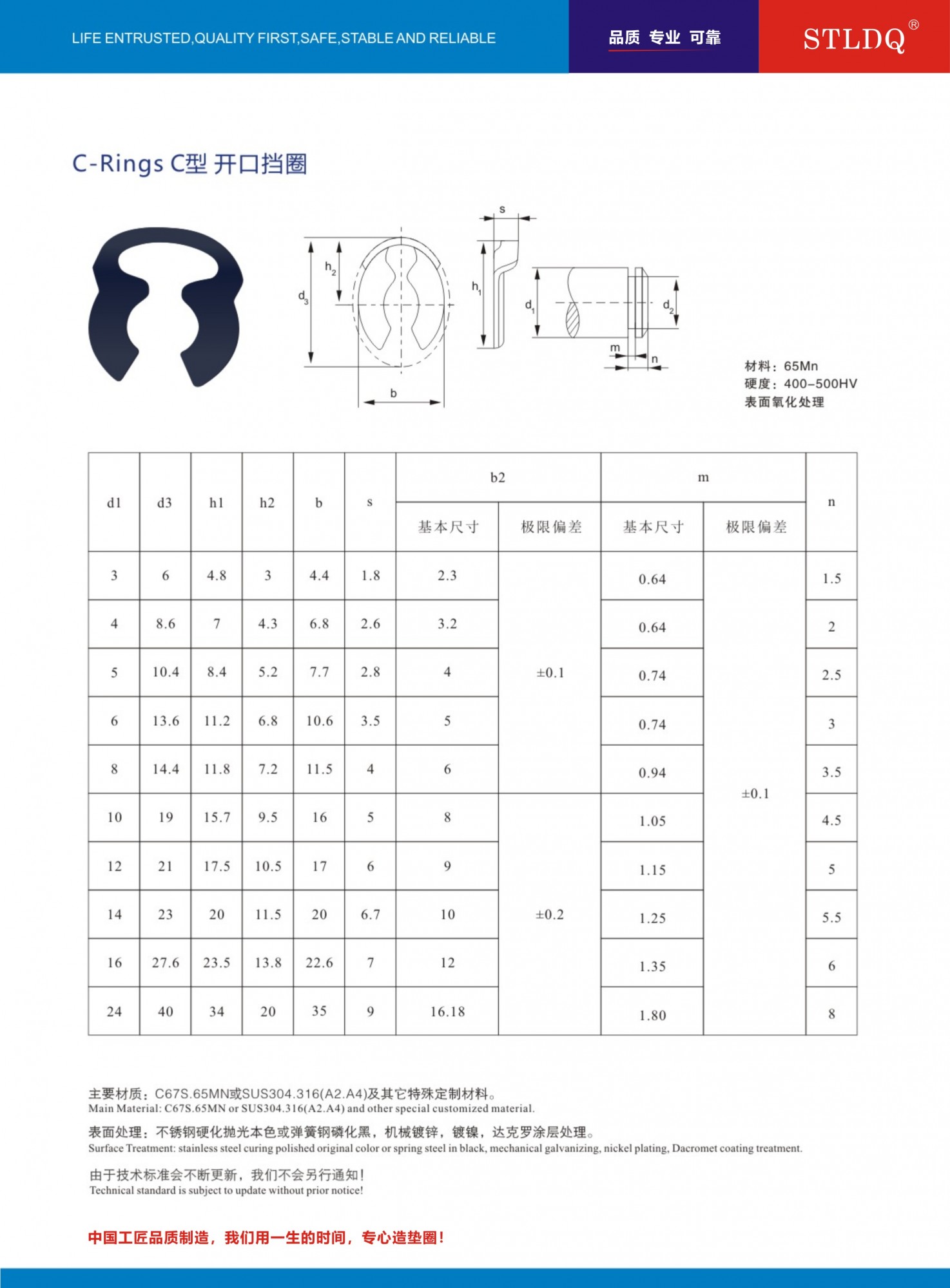 CR型开口挡圈,M3-M24规格 65mn材质 表面处理:磷化黑色